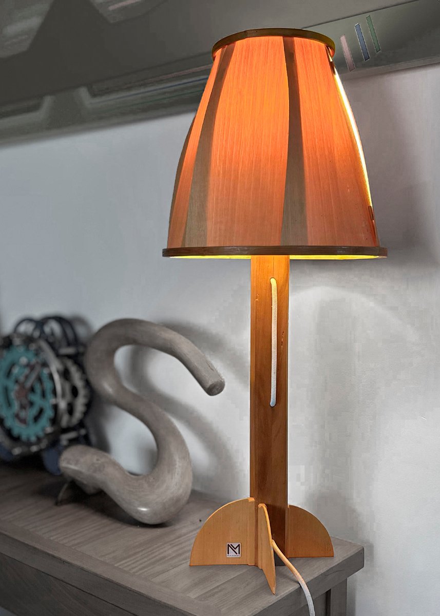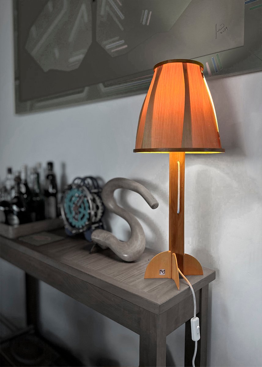Cada Abajur Gil é uma obra de arte única, resultado do uso de madeiras nobres com texturas e cores variadas. Este processo manual e cuidadoso garante exclusividade a cada peça, tornando cada abajur único, assim como os ambientes que ele ilumina. O respeito à natureza e o aproveitamento sustentável de materiais nobres são valores que o Nudo de Madera reflete em suas criações.