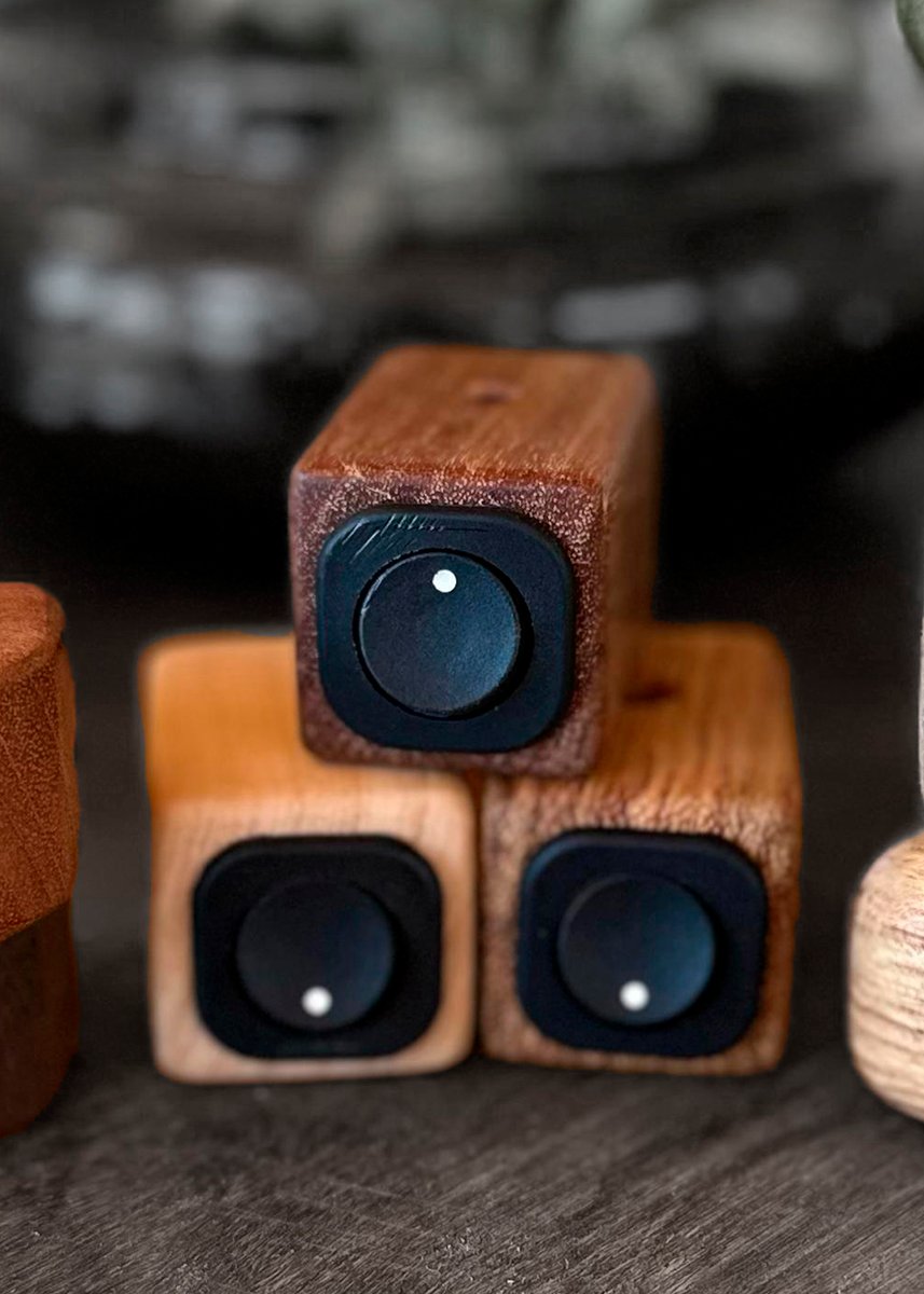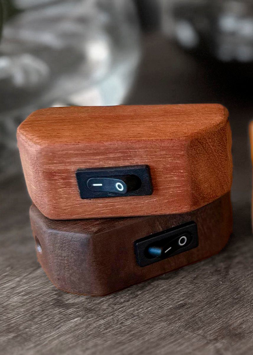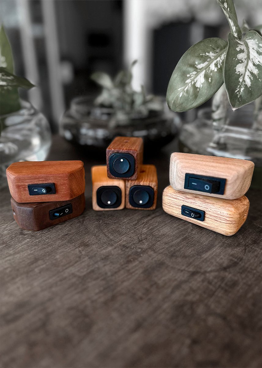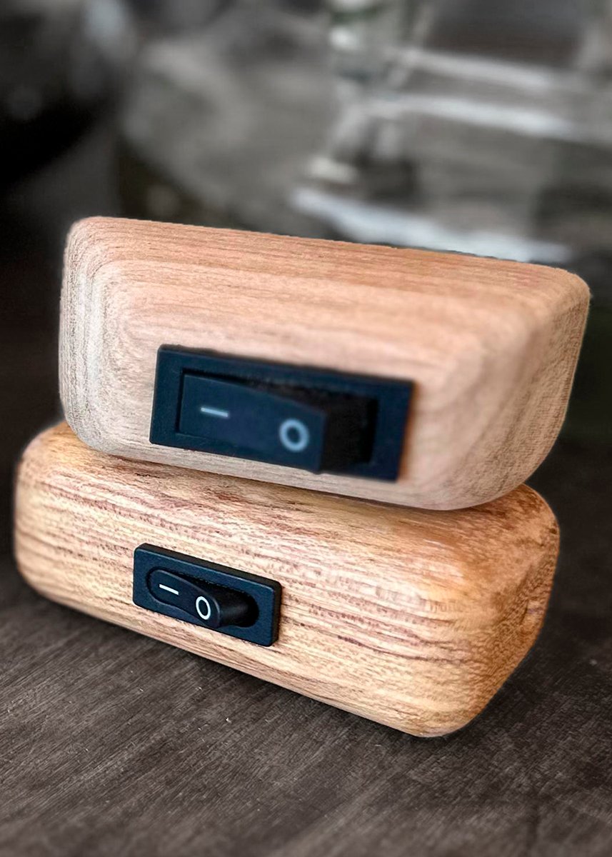 Interruptor, de energia feito em madeira nobre.
